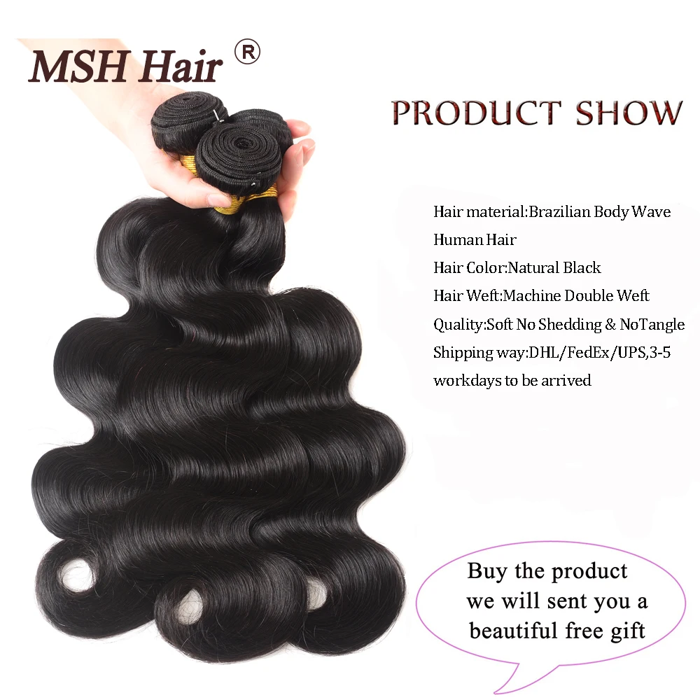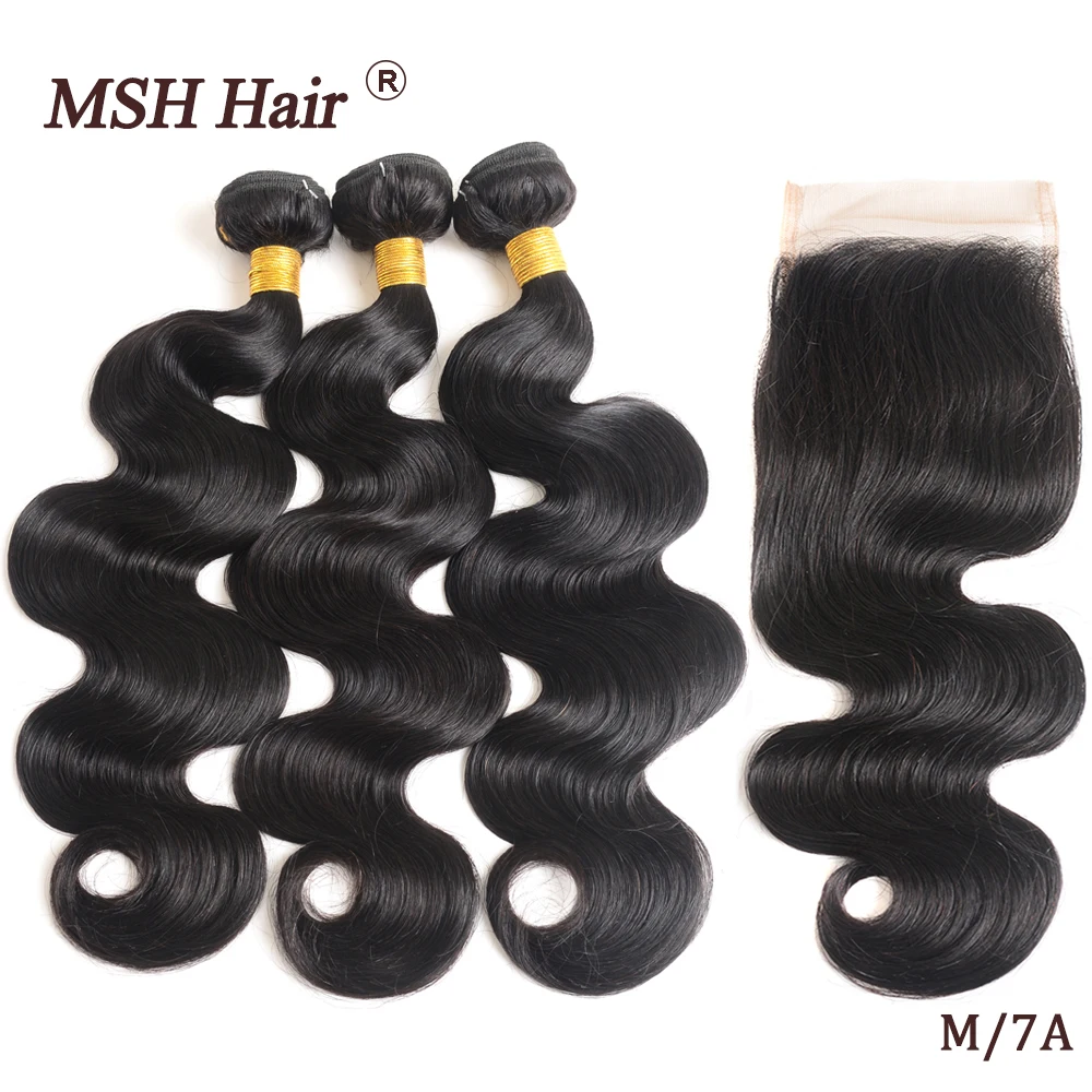 Special Offer MSH włosów brazylijski ciało fala ludzkie włosy splot wiązki z 4*4 zamknięcie koronki 130% gęstości nie Remy średni stosunek Discount 62% Today!
