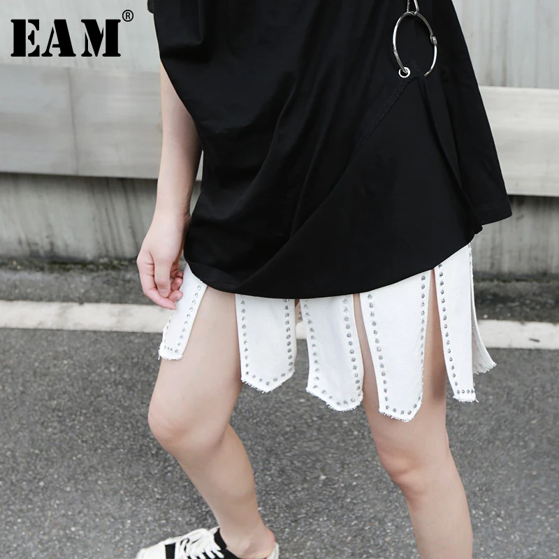 . (Zniżka 17%) Skup Tanie [EAM] 2019 nowa wiosna lato wysoki elastyczny pas nieregularne Rhinestone osobowości łączone pół ciała spódnica kobiety moda JX408 Ceny.