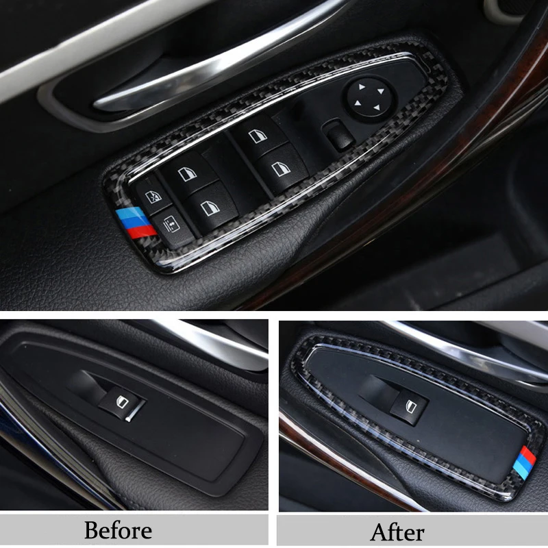 . (Zniżka 25%) Tanie Drzwi samochodu podłokietnik dekoracja paneli naklejki 4 sztuk dla BMW serii 3 4 3GT F30 F32 F34 okna z włókna węglowego podnoszenia szkła przyciski wykończenia Ceny.