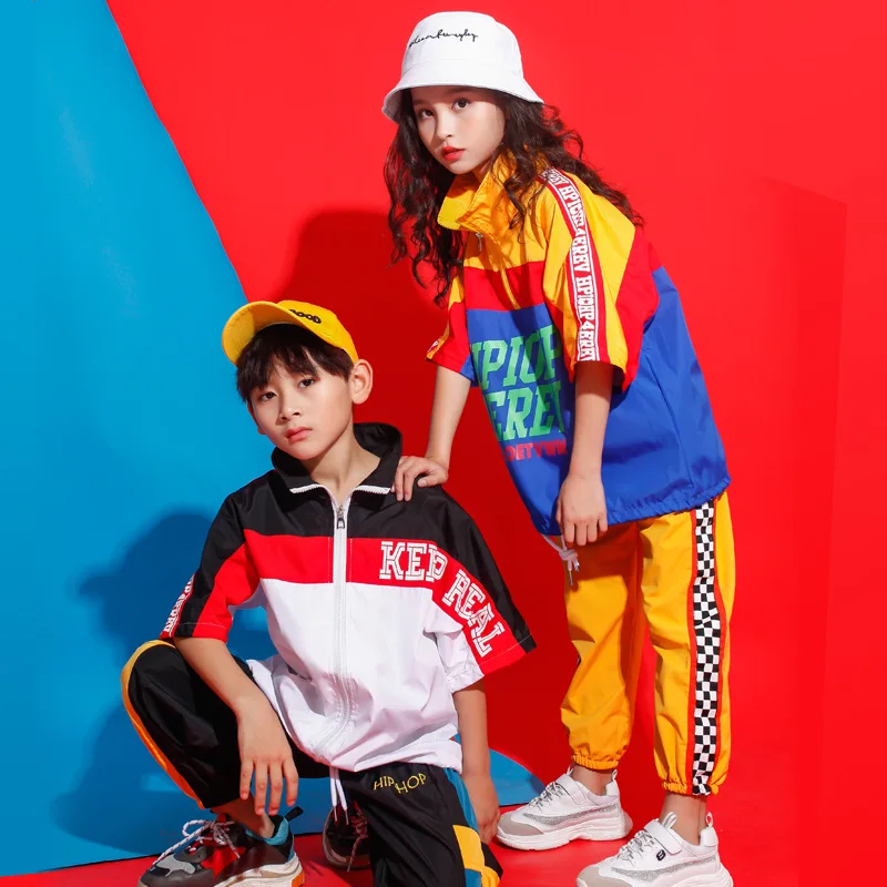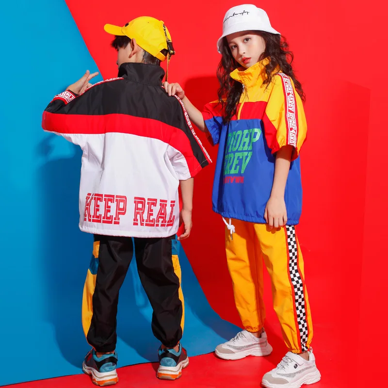 . (Zniżka 27%) Skup Tanie Moda dziecięca odzież hip hopowa na szyję kurtka pulower Top Running Casual spodnie dla dziewczynek chłopcy Jazz kostium taneczny ubrania w stylu streetwear Cena.
