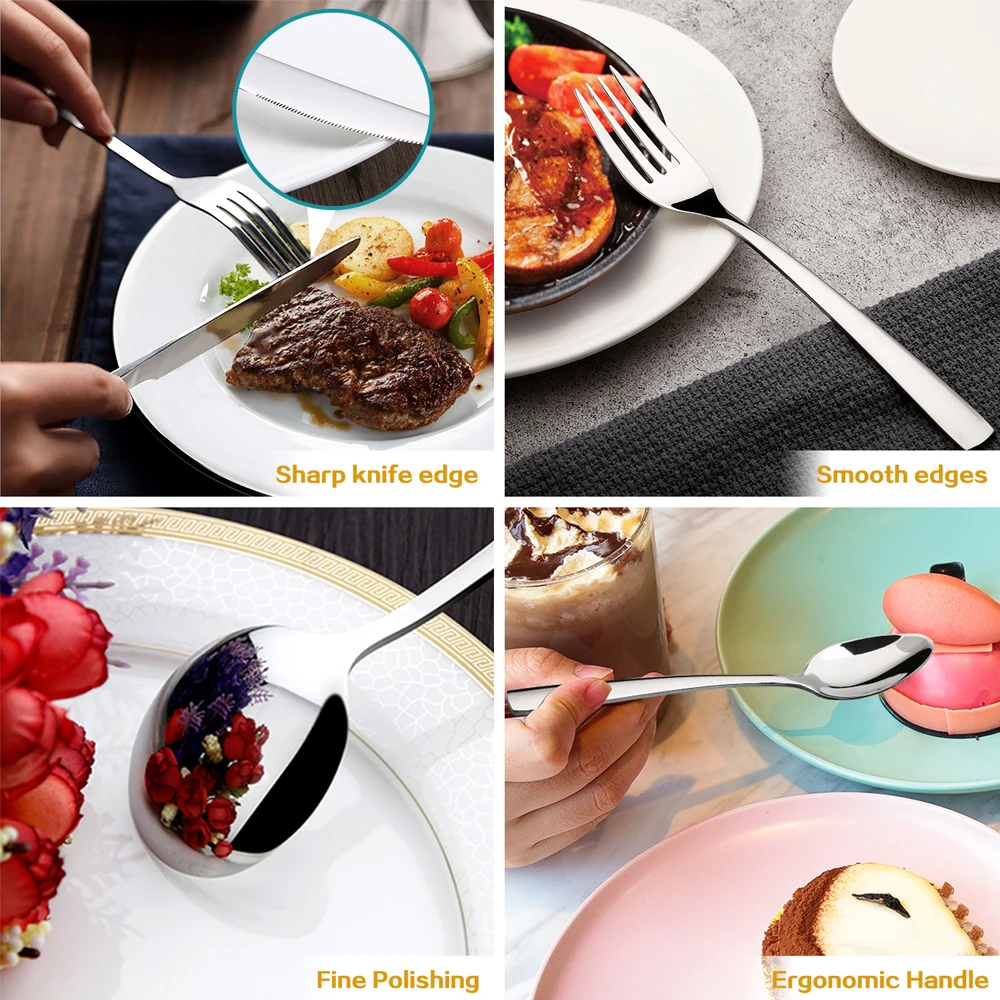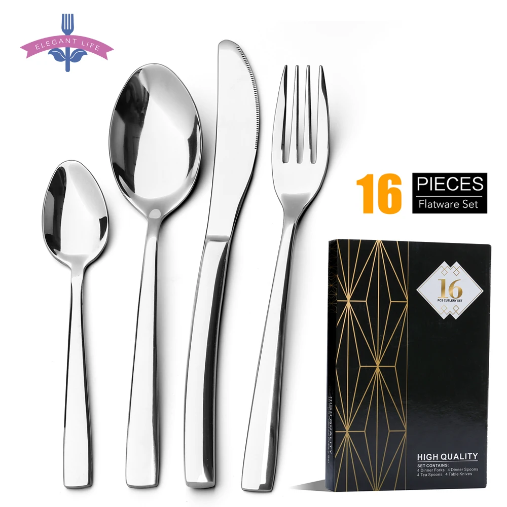 Special Offer 16 sztuk zestaw sztućców polerowanie lustrzane zestawy sztućców sztućce ze stali nierdzewnej naczynia stołowe łyżki noże widelec pudełko Discount 30% Today!