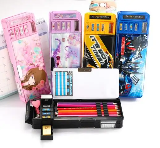. (Zniżka 34%) Tanie Transformatory wielofunkcyjny piórnik cartoon kreatywny piórnik o dużej pojemności dwustronne pudełko na artykuły biurowe Ceny.