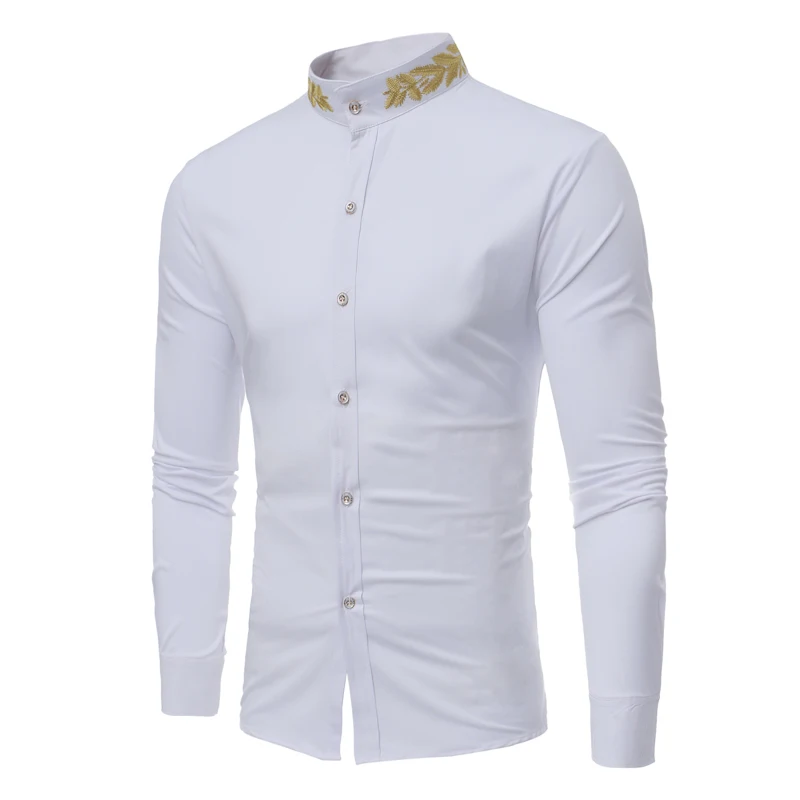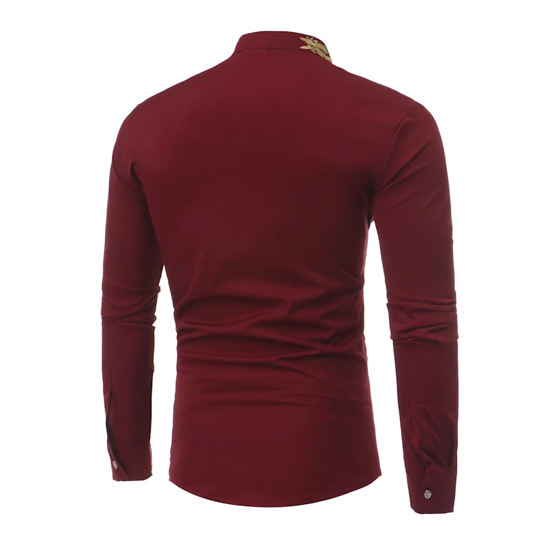Special Offer Stojak kołnierz koszula męska 2017 Brand New złoty haft koszula męska z długim rękawem Slim Fit bawełniane koszule męskie Casual męskie ubranie koszule Discount 50% Today!