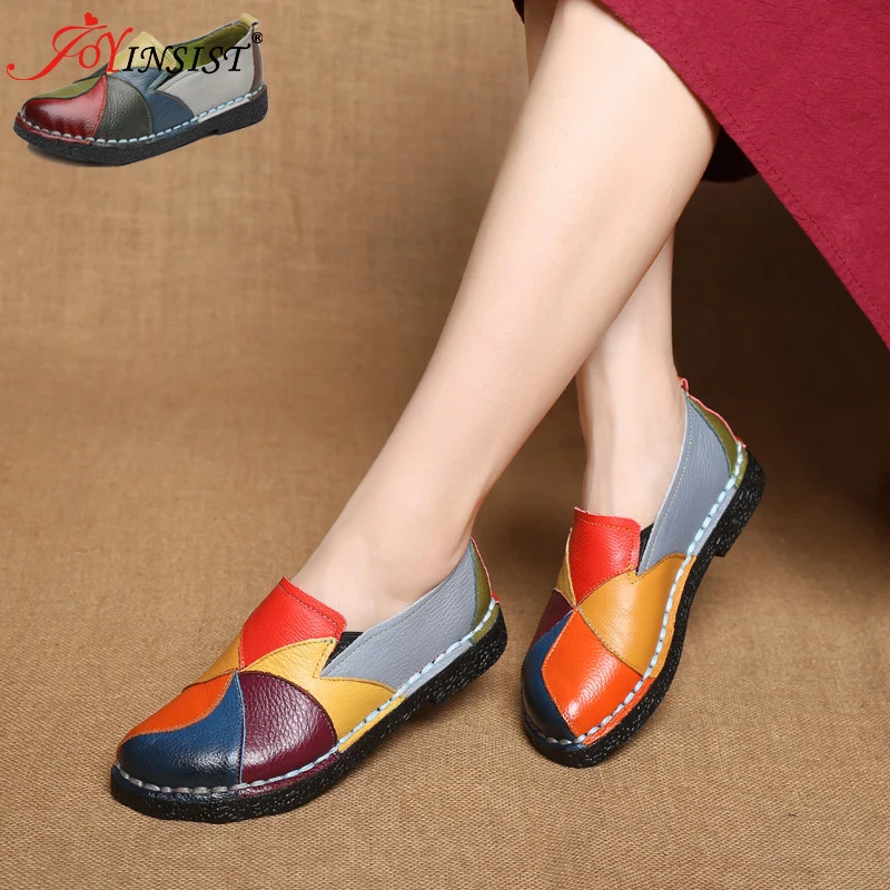 Special Offer W stylu etnicznym 2018 jesienne duże stocznie na buty damskie skórzane buty w kolorze czaru płaskie buty z miękką podeszwą Discount 50% Today!