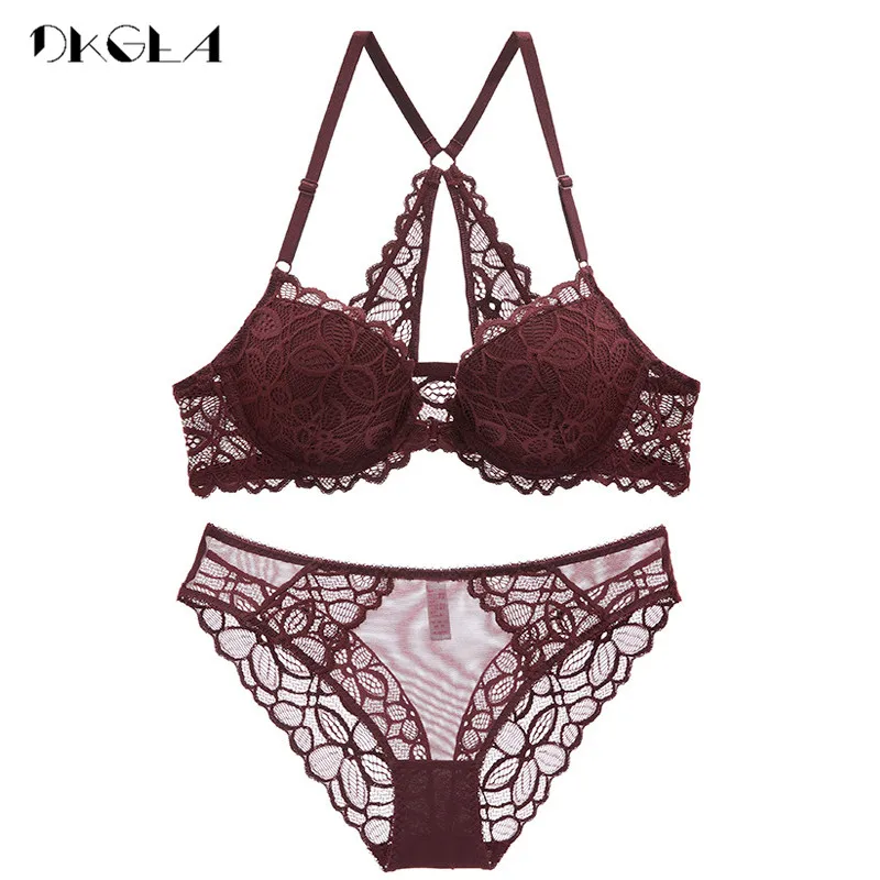Special Offer Biustonosz zapinany z przodu koronkowy komplet bielizny seksowny głęboki V biustonosz gruby biustonosz Push Up figi komplety haft fioletowy komplet bielizny damskiej Discount 53% Today!