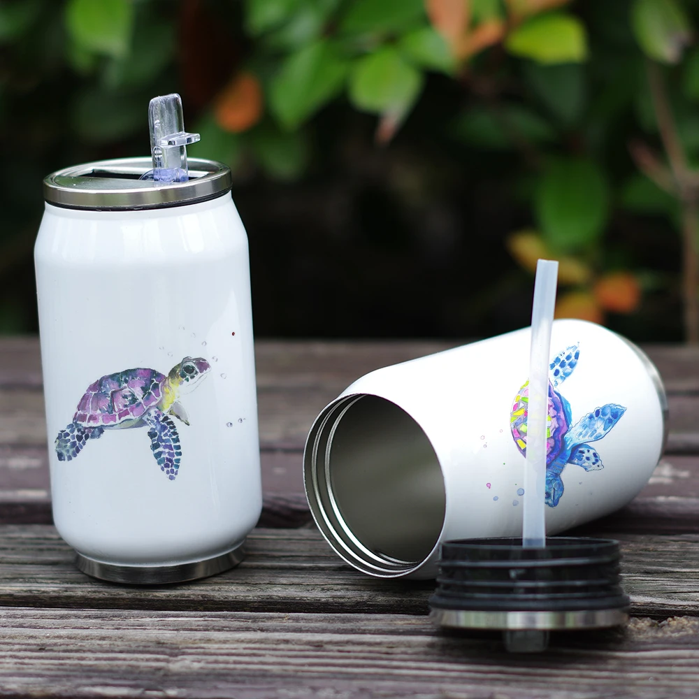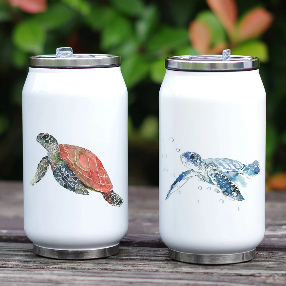 Special Offer Izolowana butelka na wodę dla dzieci żółwiem morskim druk akwarelowy nowy rysunek zaprojektowany termos próżniowy ze stali nierdzewnej unikalny prezent Discount 7% Today!