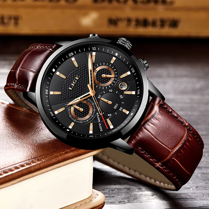 Special Offer LIGE nowe męskie zegarki Top marka luksusowy wojskowy zegarek sportowy mężczyźni skórzany wodoodporny zegar kwarcowy zegarek Relogio Masculino + Box Discount 91% Today!
