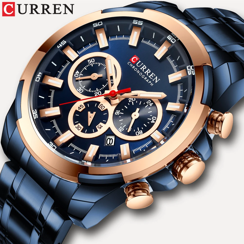 . (Zniżka 93%) Skup CURREN nowa moda męska Casual zegarek dla mężczyzn data zegarek kwarcowy Sport Chronograph Mesh stalowy zegarek studencki relojes hombre Najtaniej Ceny.