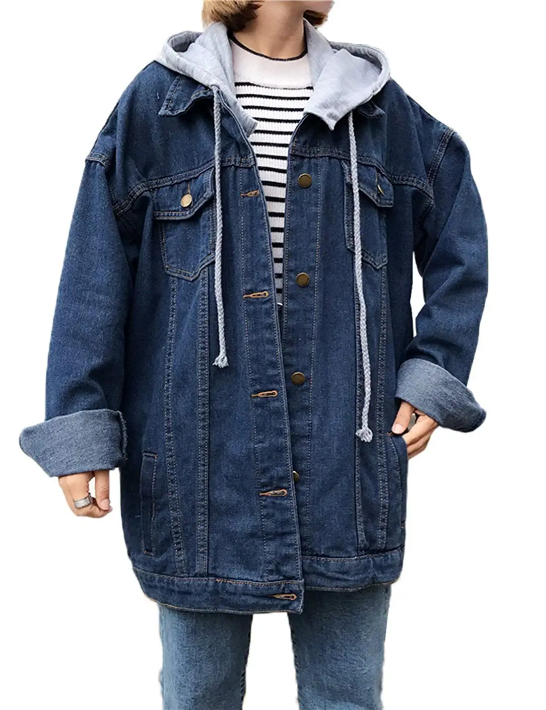 Special Offer Kobiet ponadgabarytowych luźne chłopaka kurtka dżinsowa z kapturem Jean kurtka Discount 0% Today!