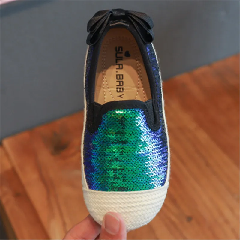 Special Offer Xiaying Fashion sequined lniane dziewczęce buty nowy motylkowy węzeł miękkie dno okrągłe głowy pojedyncze buty na wiosnę i jesień 2019 Discount 0% Today!