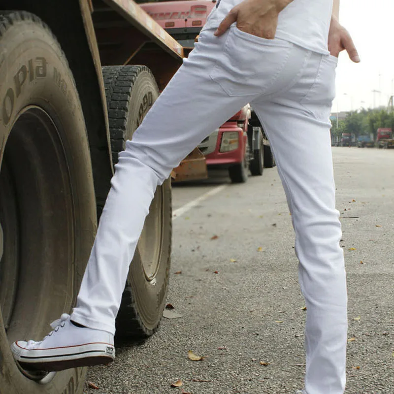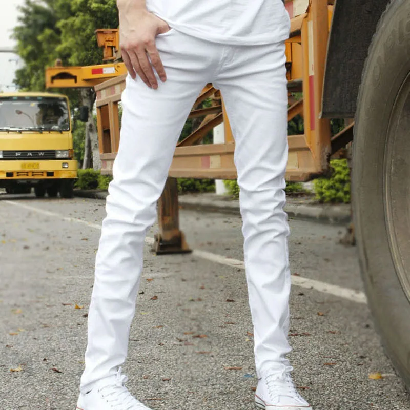 Special Offer Moda 2019 wiosna jesień na co dzień szczupła miasto biały męskie nogi nastolatków chłopiec ołówek spodnie elastyczne cienkie Hip Hop Skinny jeans mężczyźni Discount 15% Today!