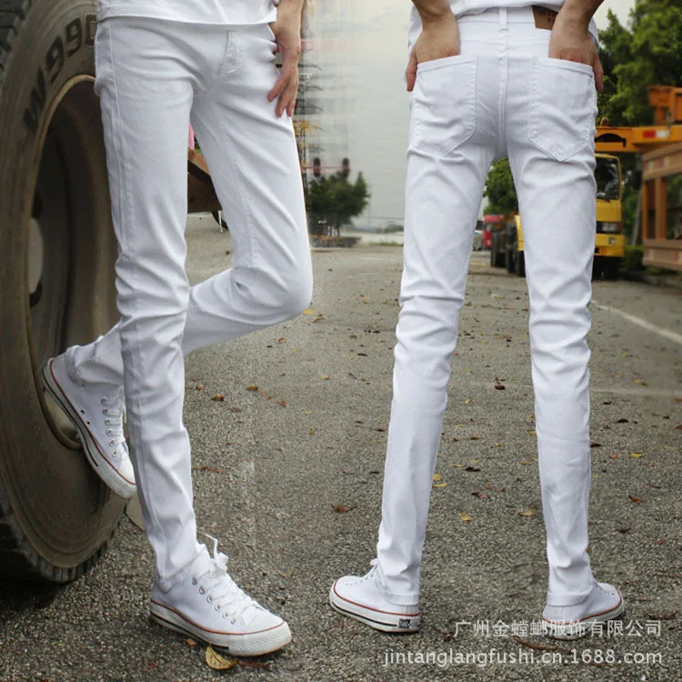 . (Zniżka 15%) Skup Moda 2019 wiosna jesień na co dzień szczupła miasto biały męskie nogi nastolatków chłopiec ołówek spodnie elastyczne cienkie Hip Hop Skinny jeans mężczyźni Najtaniej Ceny.