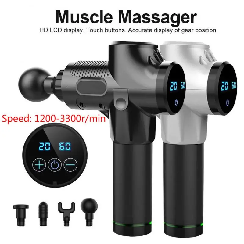 . (Zniżka 18%) Skup Tanie Do masażu mięśni r terapia elektryczna ciało LED pistolety do masażu mięśni 20 plików ciało relaksujące urządzenie do masażu Relief 4 głowice dropshipping Ceny.