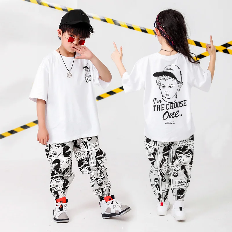 Special Offer Dla dzieci odzież hip hopowa ponadgabarytowych T Shirt Cartoon do biegania na co dzień spodnie dla dziewczynek chłopcy kostiumy do tańca nosić taniec towarzyski ubrania Discount 27% Today!