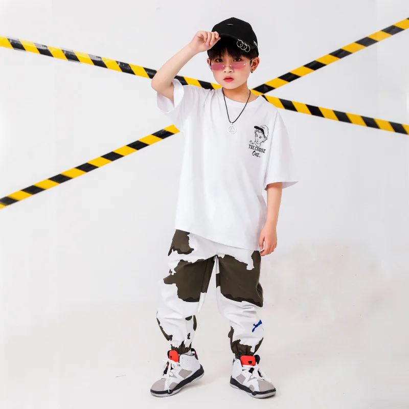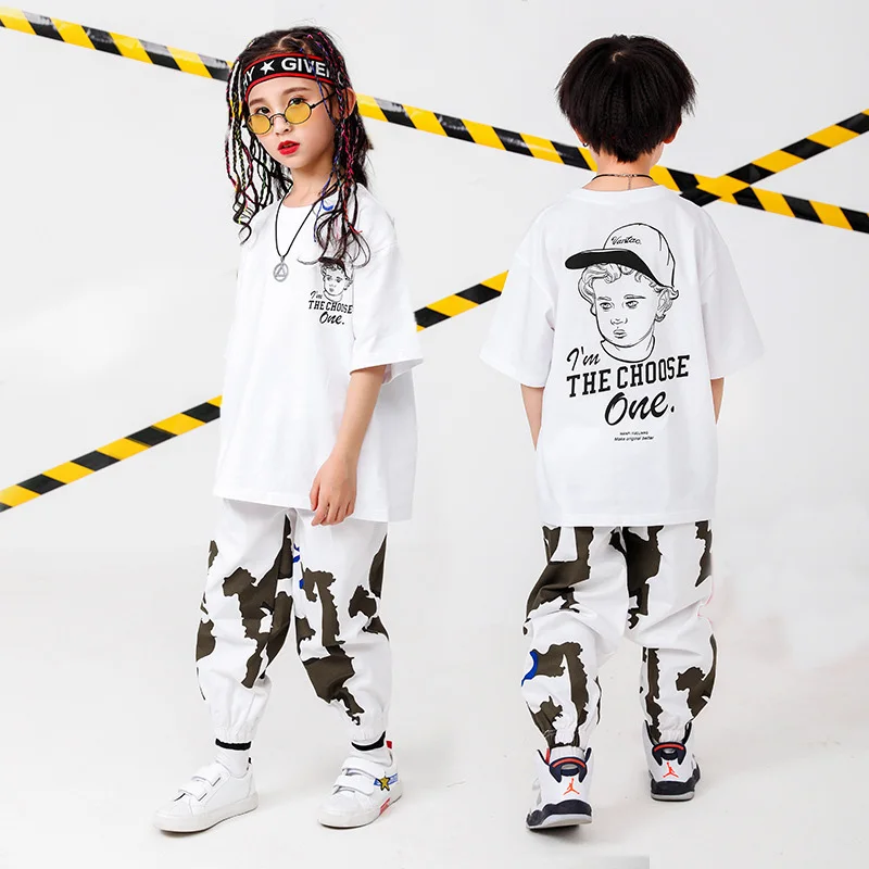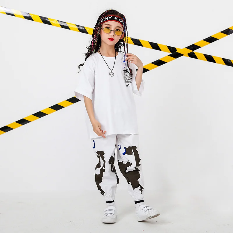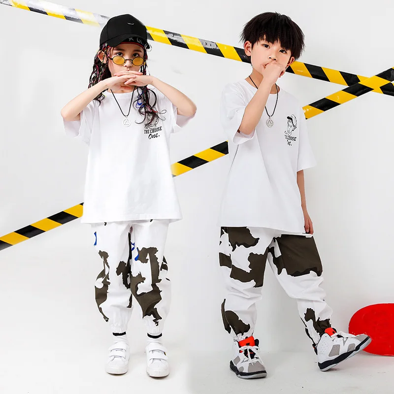 . (Zniżka 27%) Tanie Kid odzież hip hopowa ponadgabarytowa koszulka topy Running Casual spodnie dla dziewczynek chłopcy Jazz kostium taneczny nosić taniec towarzyski ubrania Ceny.