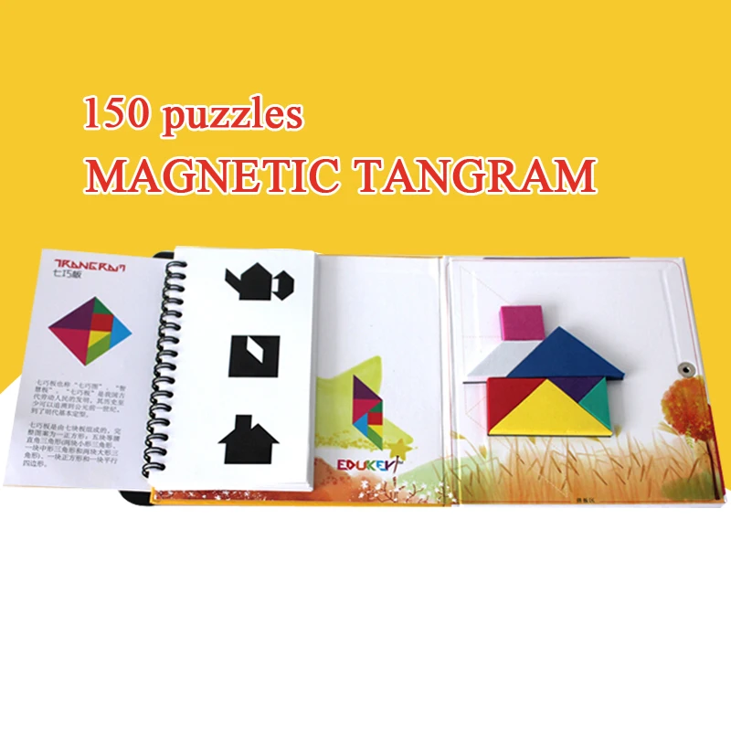 Special Offer Hot 150 puzzle magnetyczne Tangram dzieci zabawki wyzwanie twój IQ A Montessori edukacyjne magiczna książka garnitur dla 3 100 lat Hobby prezent Discount 30% Today!