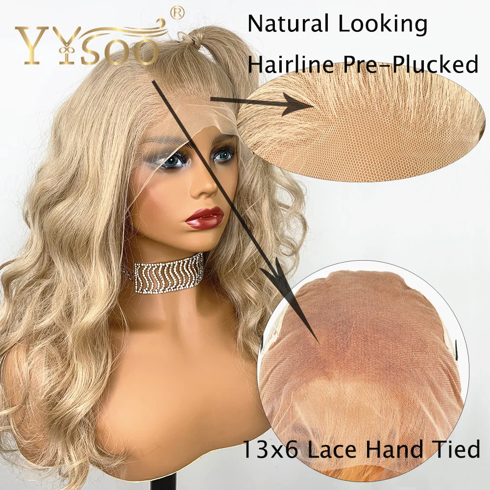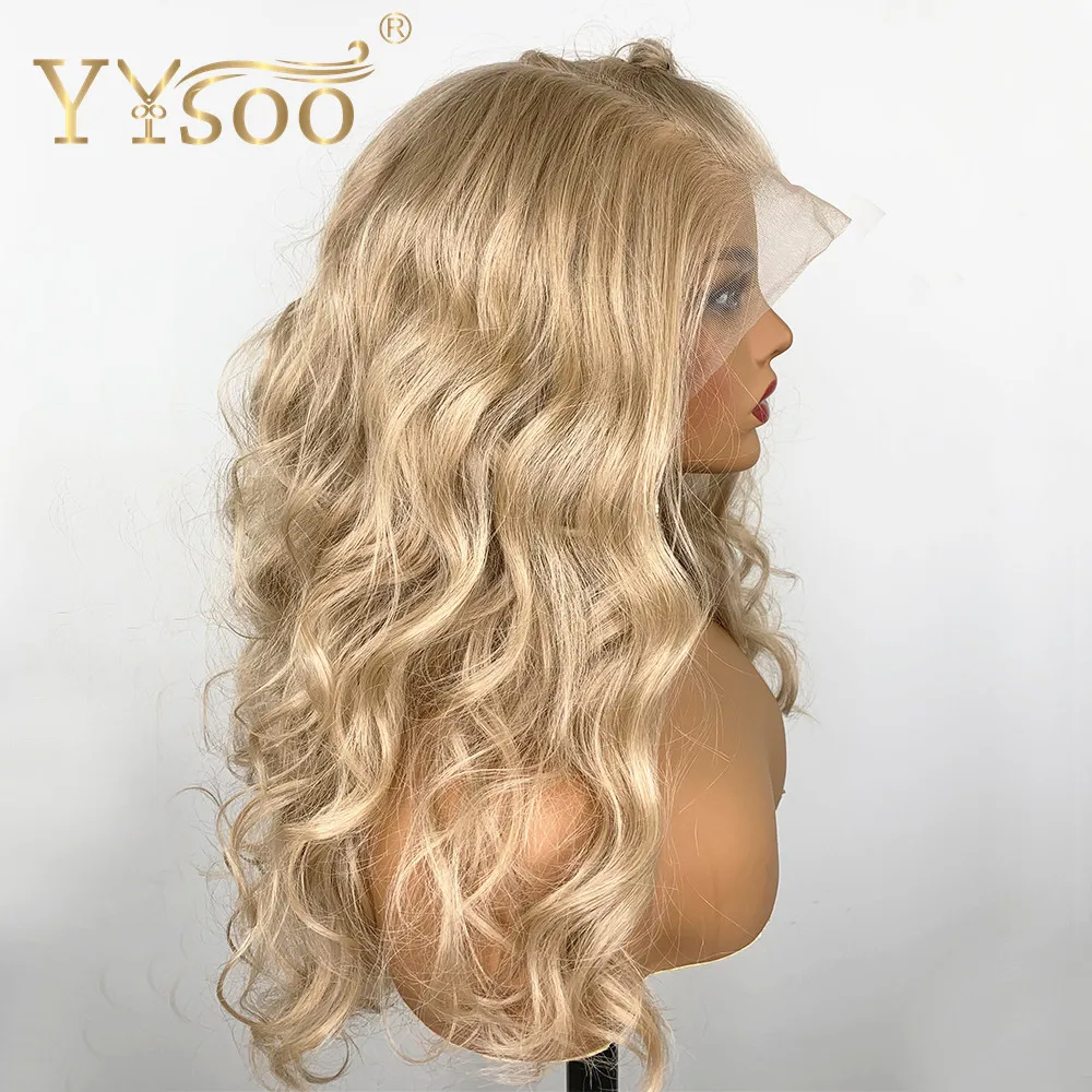 Special Offer YYsoo 13x6 syntetyczna koronka przodu peruki blond dla kobiet pół ręka wiązane włókno termoodporne wymiana włosów peruki z kręconymi włosami 150 gęstość Discount 38% Today!