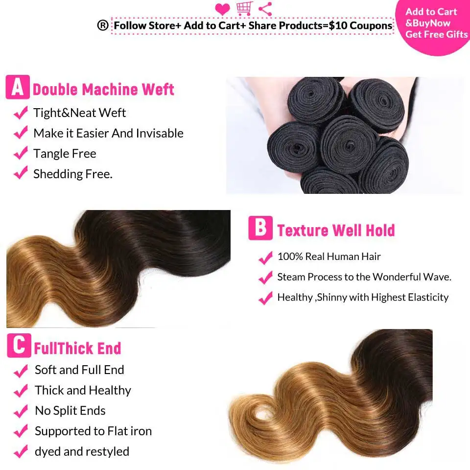 Special Offer Ombre ciało fala brazylijskie doczepy do włosów splot 3 4 wiązki wiązki ludzkich włosów nie Remy Ombre doczepy z ludzkich włosów średni stosunek Discount 40% Today!