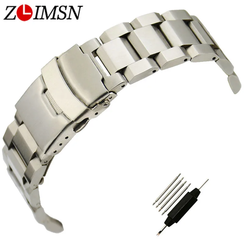 Special Offer ZLIMSN 316L ze stali nierdzewnej Watchband bransoletka sportowa płaska końcówka podwójny przycisk solidnym zapięciem wojskowy Relogio 18 20 22 24mm Discount 40% Today!