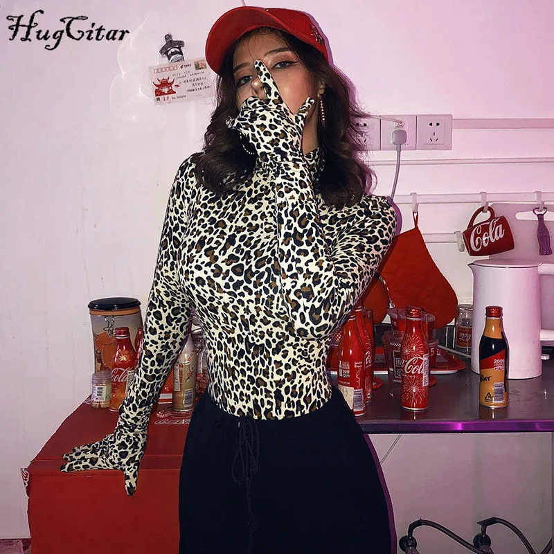 Special Offer Hugcitar 2019 leopard z długim rękawem z rękawice sexy body jesień zima kobiety streetwear klub party ciało Discount 45% Today!