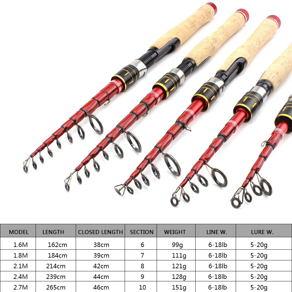 Special Offer Nowy 1.6m 1.8m 2.1m 2.4m 2.7m wędka wędka węglowa teleskopowy drewniany uchwyt Spinning wędka podróży wędkarskiego Discount 45% Today!