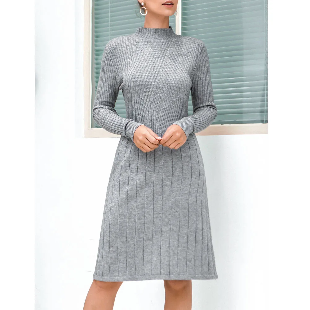 Special Offer Jesienno zimowa wykańczająca ciepła dzianinowa sukienka jednokolorowa półgolf w połowie długości sukienki swetrowe sukienka dzianinowa Discount 48% Today!