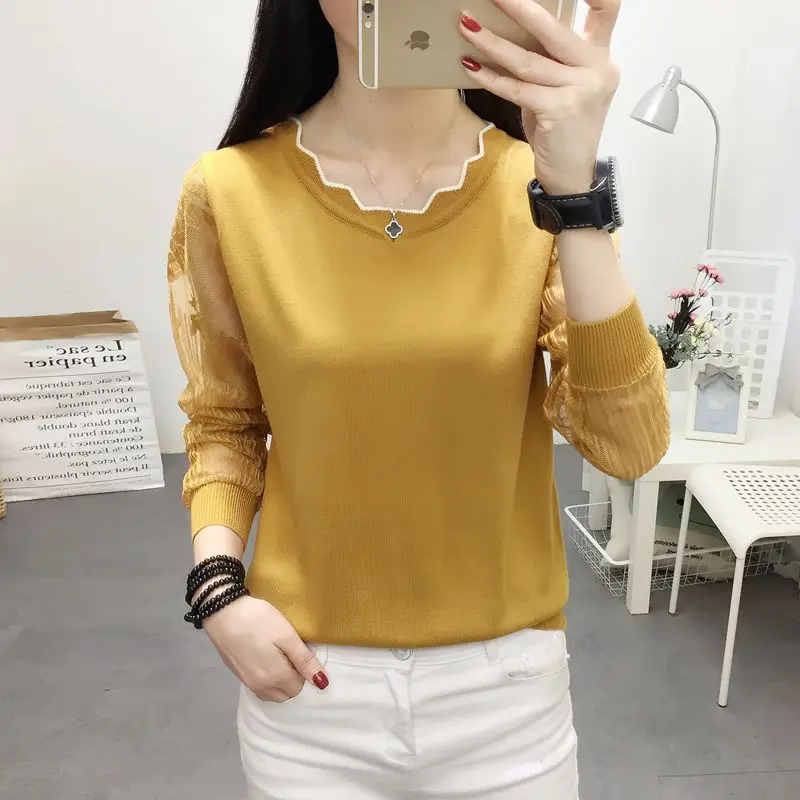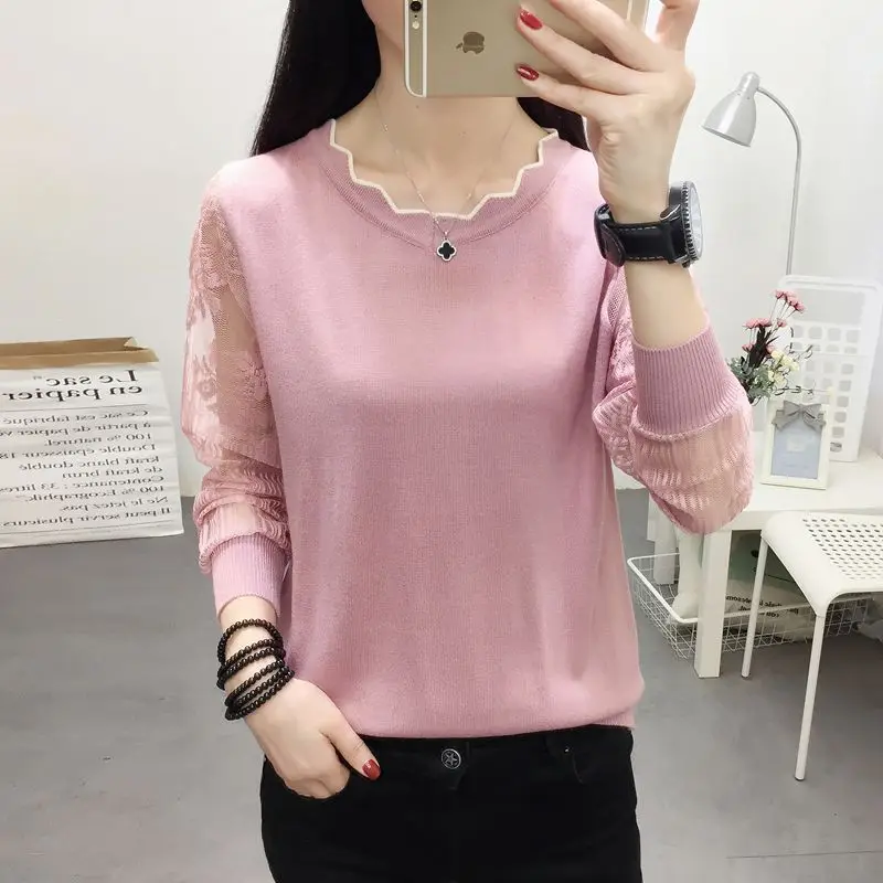 Special Offer OHCLOTHING 2019New koronkowy sweter kobiece dół bluzka z długim rękawem luźna na wiosnę nowa, cienka bluzka z dzianiny bluzka Trend Discount 50% Today!