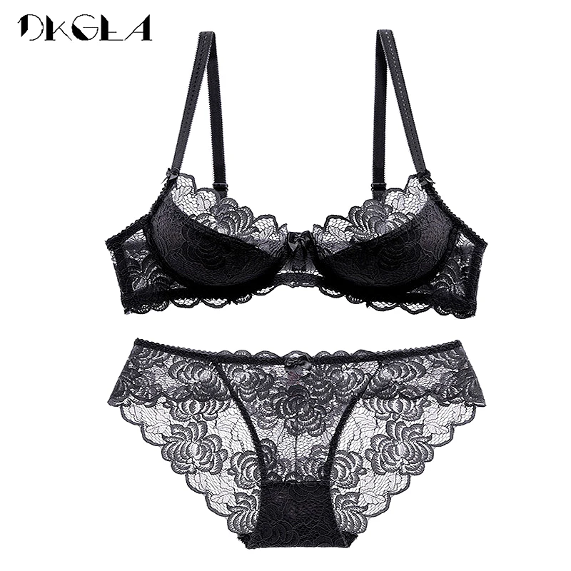. (Zniżka 51%) Skup Hollow Sexy biustonosz ultracienki zestaw bielizny Plus rozmiar C D kubek kobiety przezroczysty biustonosz komplety koronkowy haft bielizna szary biustonosz Najtaniej Cena.