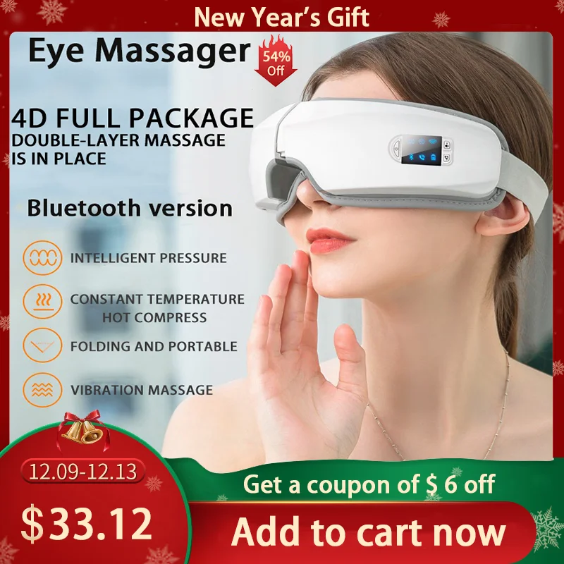 Special Offer 4D Smart Airbag wibracyjny masażer do oczu pielęgnacja oczu Instrument gorący kompres Bluetooth zmęczenie oczu masaż okulary Discount 53% Today!
