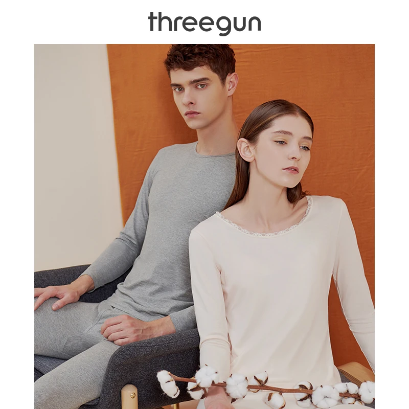 . (Zniżka 53%) Skup Tanie THREEGUN bielizna termiczna zestaw kalesonów mężczyźni kobiety z szkatułce lekka elastyczna bawełna wokół szyi piżamy najniższy garnitur Ceny.