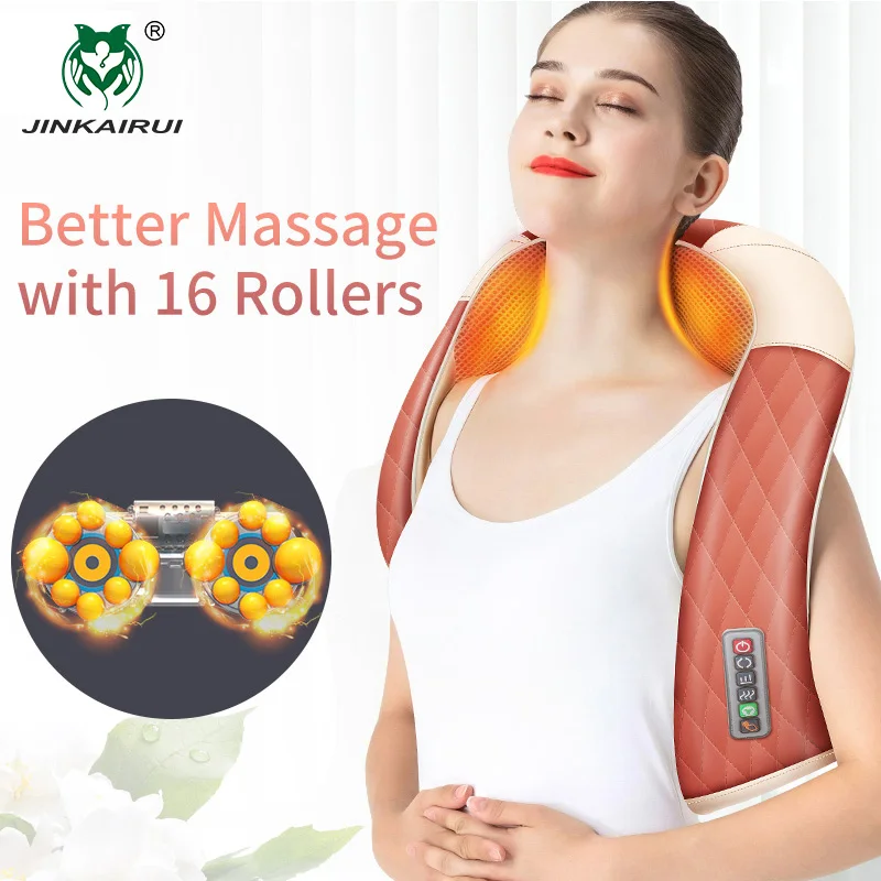 Special Offer JinKaiRui masażer szyi aplikacja ciała 16 rolki do masażu działa przeciwbólowo bezprzewodowy ogrzewanie funkcja podczerwieni samochód domu podwójnego zastosowania Discount 66% Today!