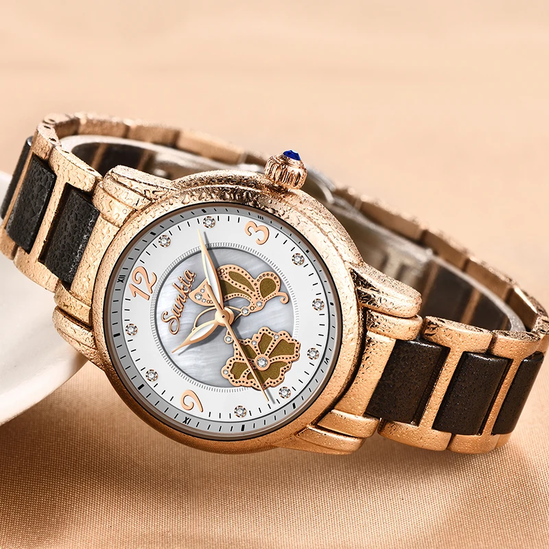 . (Zniżka 94%) Skup Tanie SUNKTA2019 nowy product różowe złoto kobiety zegarki kwarcowe zegarek top damski marka luksusowa kobieta zegarek dziewczyna zegar Relogio Feminino + Box Cena.