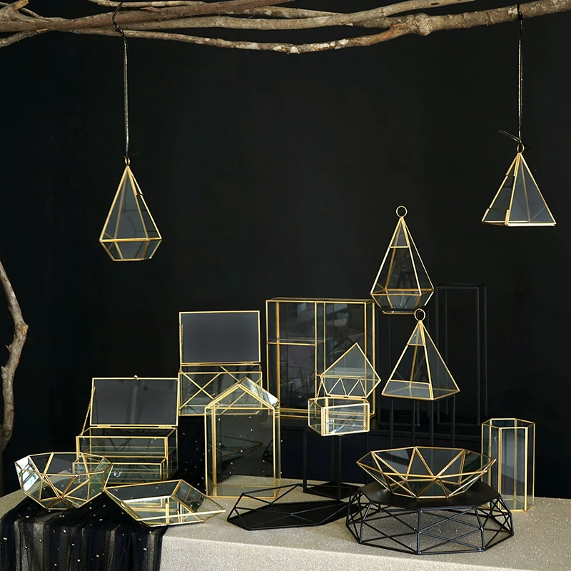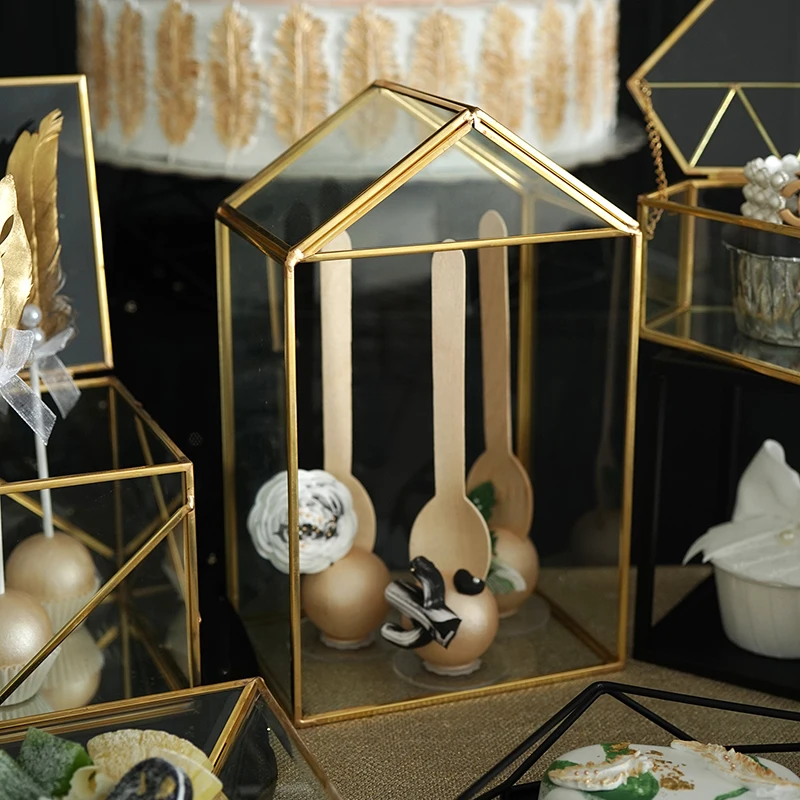Special Offer SWEETGO wielokąta szklane pudełko na ciasto stołowe uchwyty do przechowywania deserowe stojaki mosiężne krawędzie pudełka na biżuterię Discount 20% Today!