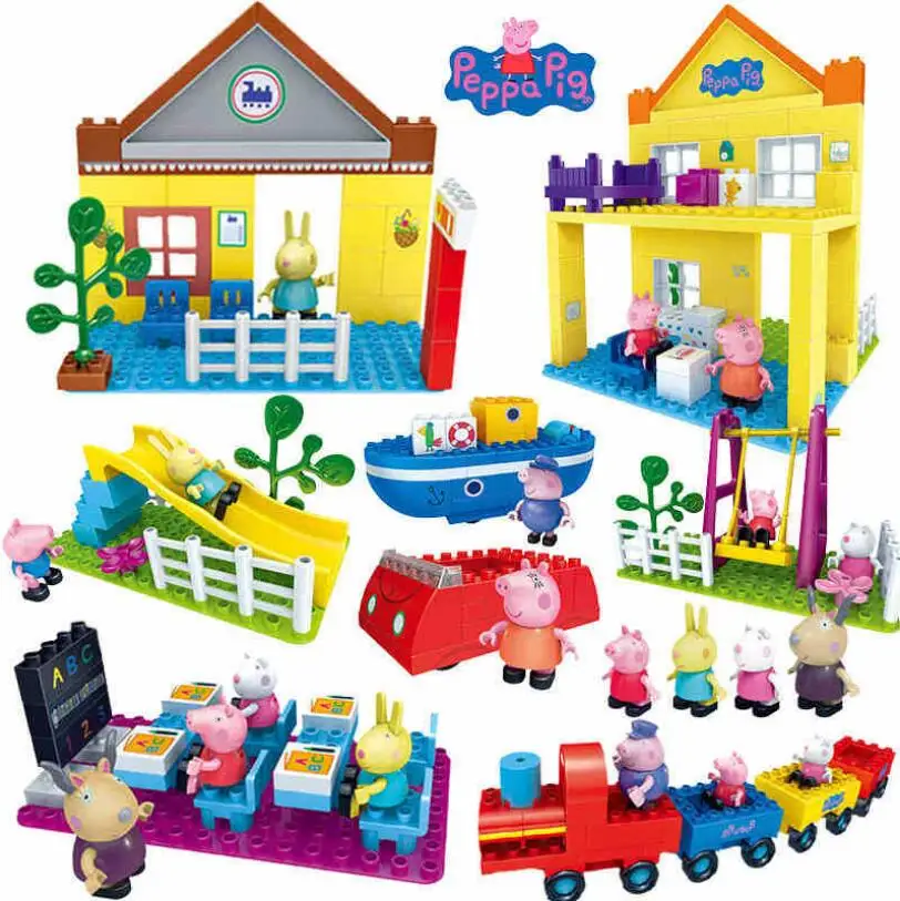 Special Offer Oryginalna świnka Peppa huśtawka zjeżdżalnia czerwony samochód łódź deluxe dom pociąg klasa figurka zabawka tatuś mumia Park budynek zabawka dla dzieci lalka Discount 35% Today!
