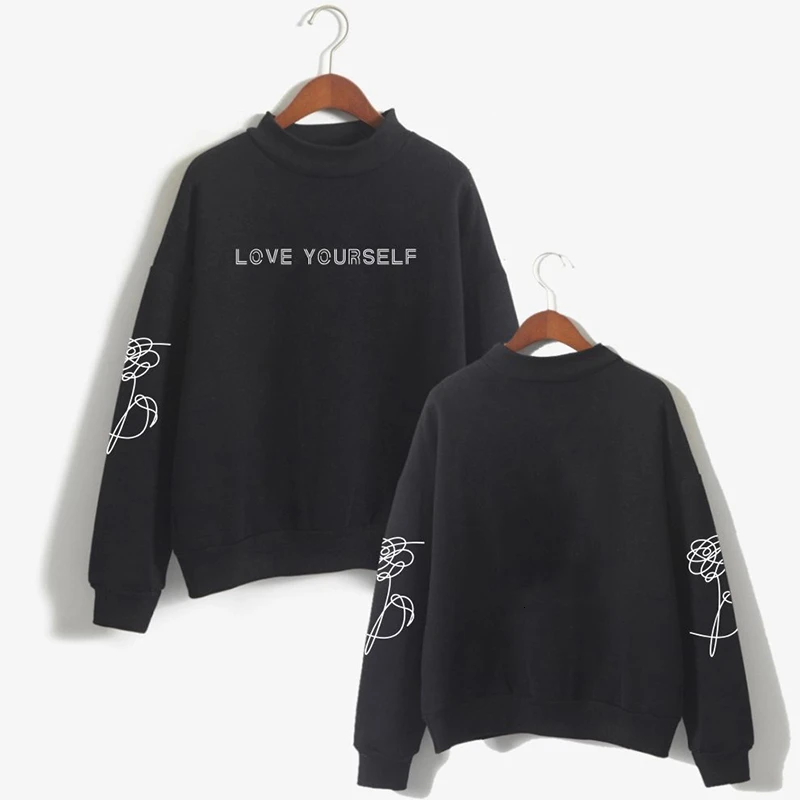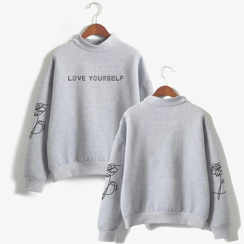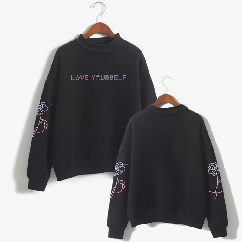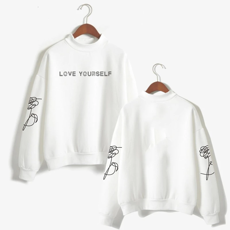 . (Zniżka 40%) Tanie 2019 Bangtan Boy koreański styl Hrajuku modne bluzy damskie O neck z długim rękawem golf Kpop szeroka odzież wierzchnia ubrania Kpop Ceny.