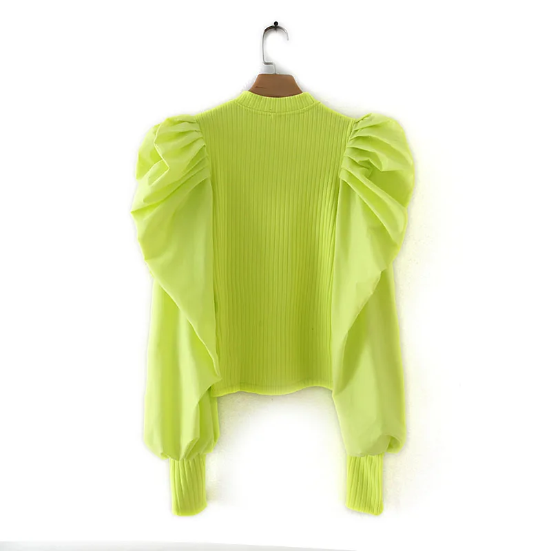 Special Offer Elegancki sweter damski sweter jesień 2019 New Fashion bufiaste rękawy Stretch Knit Body popelina rękaw Modern Lady sukienki z falbanką Discount 43% Today!