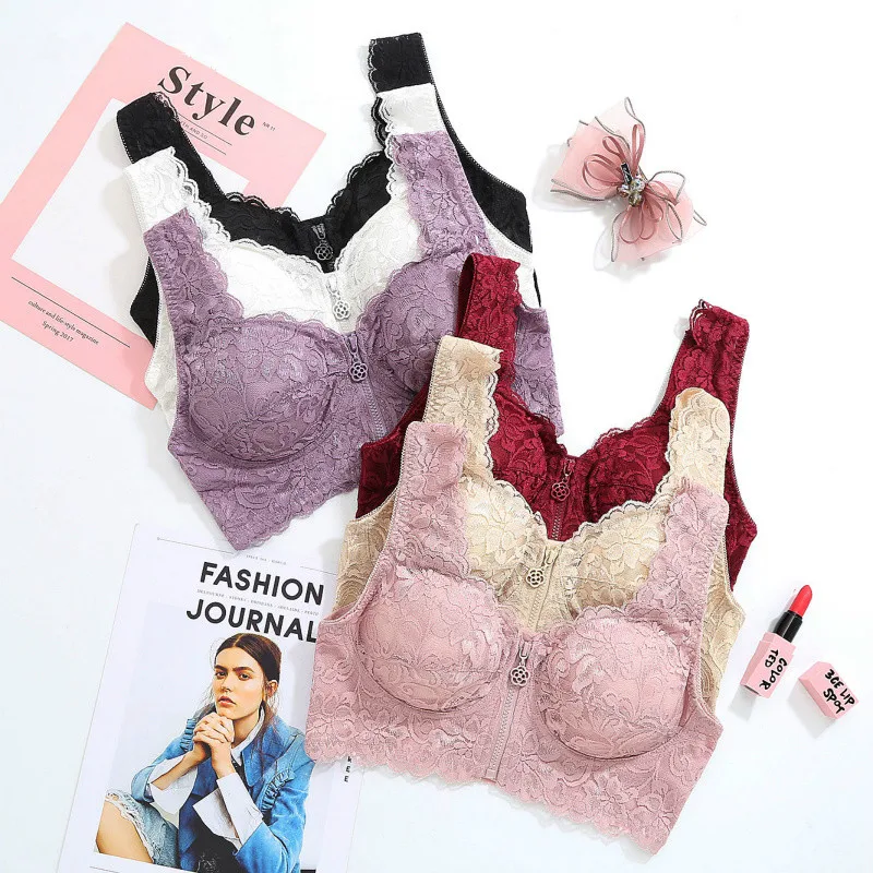 Special Offer Sexy koronki wyjmowane wkładki, kamizelka snu biustonosz majtki bawełna Push Up dla kobiet XXXL drut bezpłatne wygodne zapięcie z przodu na zamek błyskawiczny plus rozmiar Discount 45% Today!